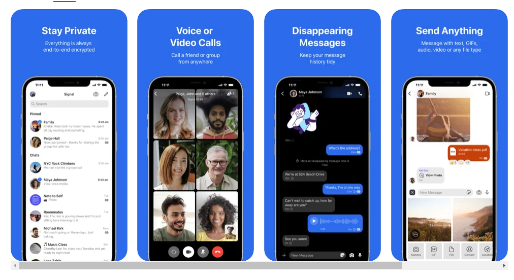 • 늘 안전한 대화 - 최신 단대단 암호화(오픈 소스 Signal Protocol™로 구동) 기술로 안전하게 대화를 나눠보세요. 더 이상 개인 정보 보호는 선택 사항이 아닙니다. Signal은 모든 메시지와 통화에 대해, 그리고 매 순간 개인 정보를 보호해 드립니다.
