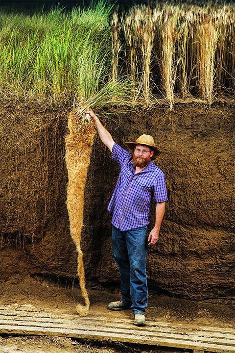 일반 유기 농업과 다른 점은 밭을 되도록 경작하지 않고 자연 그대로의 농업을 실천하는 것인데요. 한해 살이 밀이 아닌 여러해 살이 밀 품종인 '컨자' kenza의 경우 살충제 없이도 잘자라고 뿌리를 통해 영양분이나 물을 모으는 기능이 뛰어나다고 합니다. 뿌리 길이가 3미터가 넘을 정도로 땅속 깊이 뻗어나가고 이런 특성 덕분에 상당량의 이산화탄소를 땅속에 저장할 수 있다고 합니다. 기후변화에 대응하는 훌륭한 작물인 것이지요.