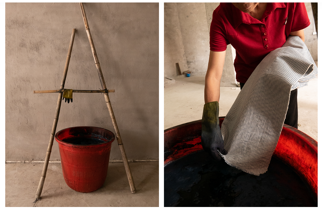 화산재가 함유된 진흙에서 몇 달 동안 염색을 해서 재킷을 만들고, 거친 질감의 데님을 만들기 위해서 데님 천을 직접 방직하고 그 위에 인디고 염료를 손으로 문질러서 색을 입힙니다. 그래서 비즈빔 청바지 중에 똑같은 컬러의 청바지는 없다고 하네요 .