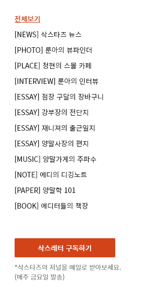 손님과 사장의 관계에서 벗어나 본인이 평소에 하고 싶었던 이야기를 전해주고 싶다는 <삭스레터> , 기대감에 뉴스레터를 신청해봅니다. 음악, 책 소개도 해주고, 저널 아티클을 모아서 보내준다고 합니다.