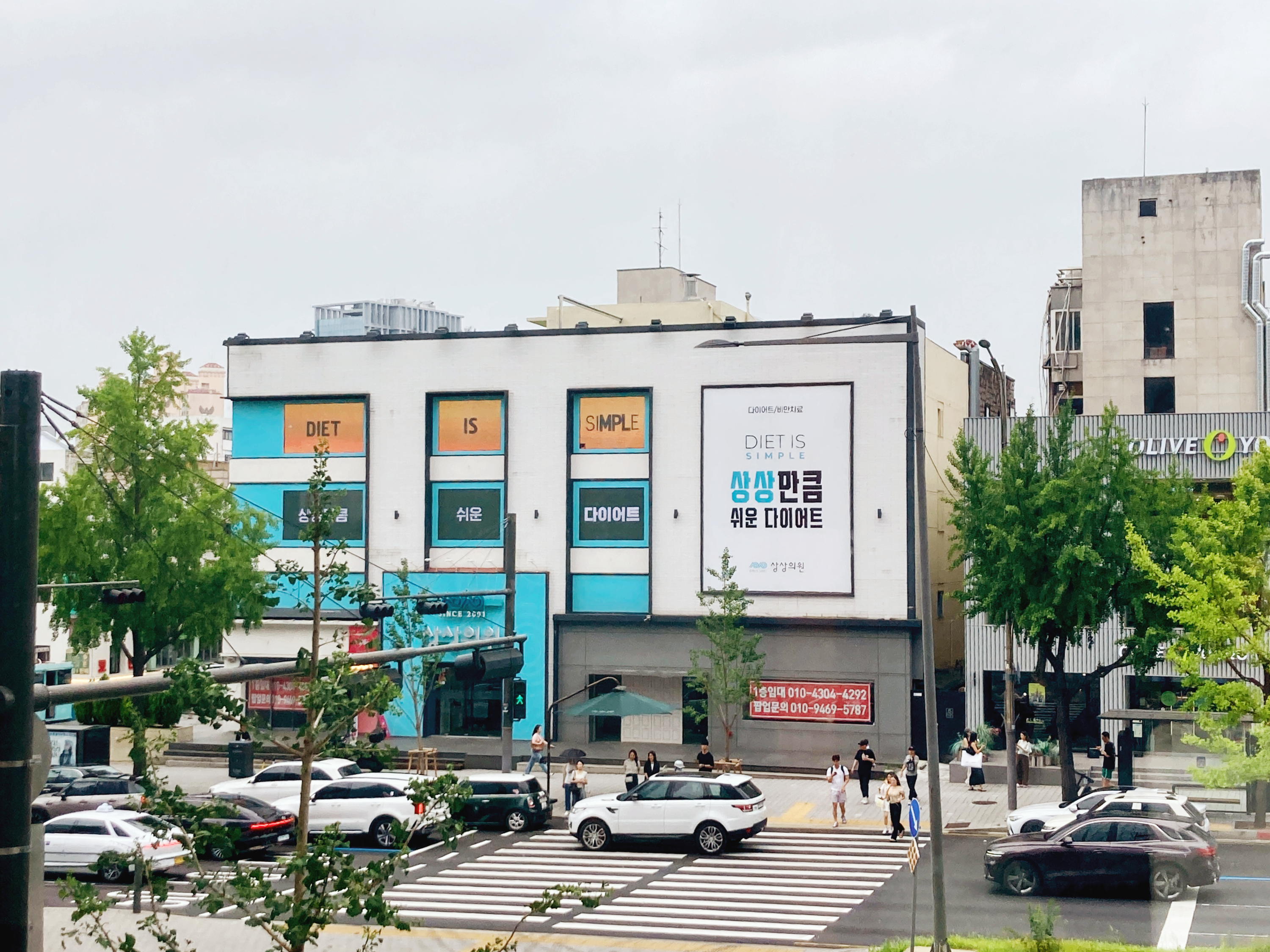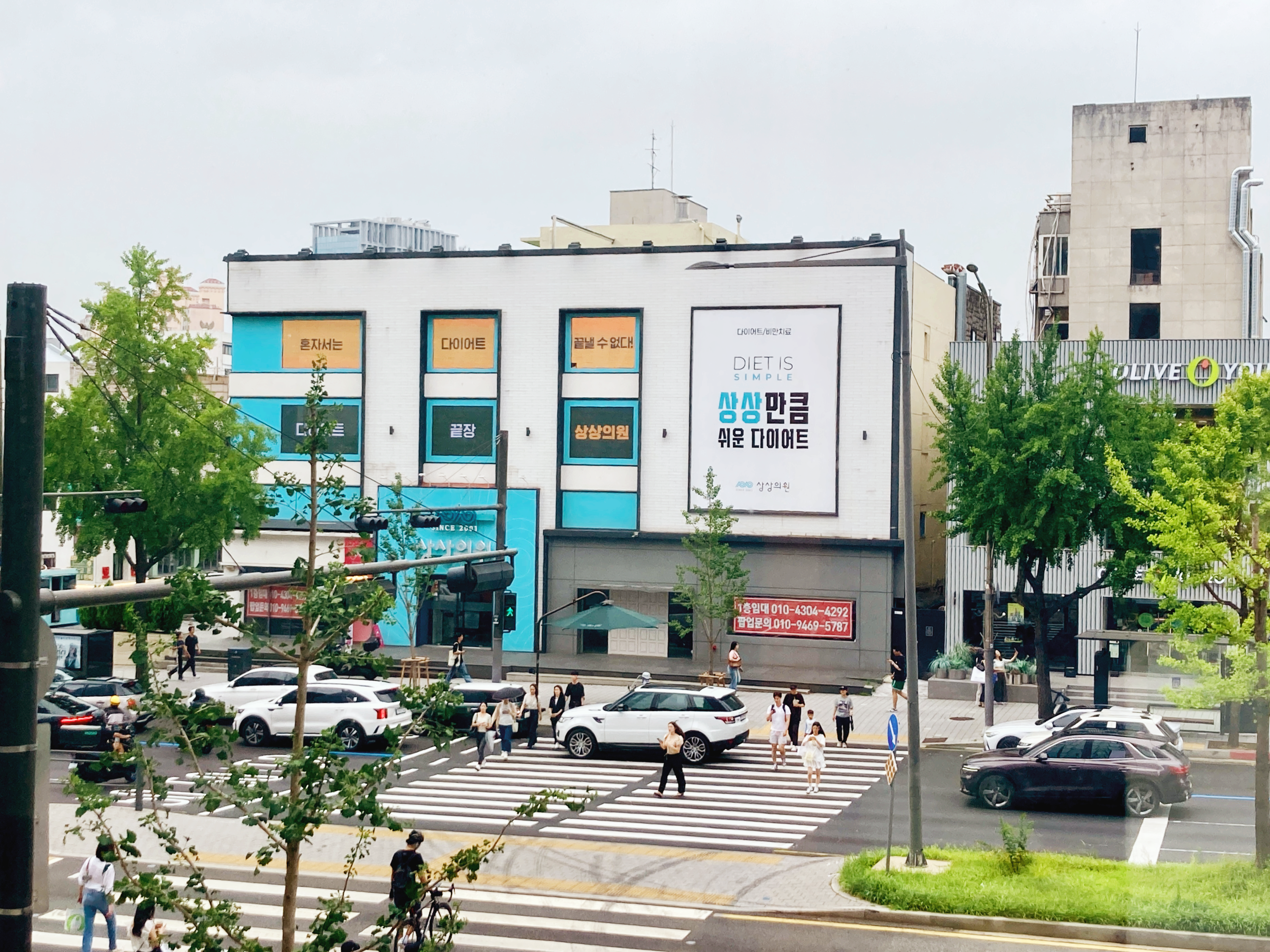 강남에 거리입니다. 반포대로 쯤인데요. 건물 한 면 전체를 옥외광고로 활용하고 있습니다.