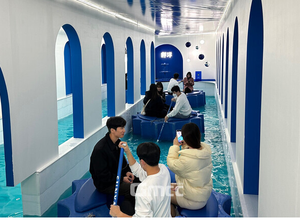 화제는 실제로 물에 띄운 병뚜껑 모양의 보트를 타고 건너가는 ‘인공바다’존입니다. 넓은 공간에 물을 채우고 보트를 띄워서 방문한 사람들을 놀라게 했습니다.