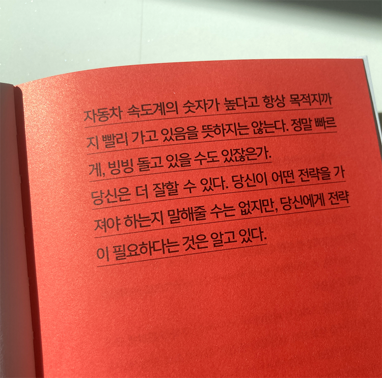 삶은 선택의 연속이며, 선택지는 많습니다. 저자는 앞으로 나아가려면 경로가 정교해야 하고, 정교한 전략은 낭비를 줄여준다고 이야기합니다.