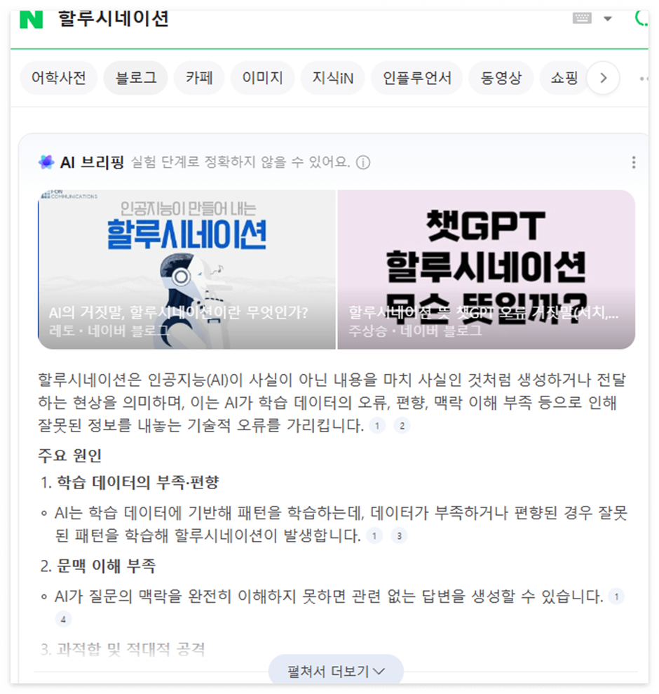포탈사이트 네이버와 구글에서 궁금한 정보를 검색하면, 최상단에 AI 글이 먼저 노출되는 경우가 나타나고 있습니다. 일목 요연하게 정리되어 있어, 시간이 절약되고 먼저 읽어보게 됩니다. 현재 시점에서는 키워드 검색시 AI글이 먼저 노출되는 것은 네이버와 구글 모두 시범적으로 적용하고 있는 상황입니다.