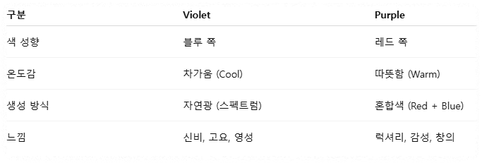 👉 "차갑고, 신비롭고, 거리감 있는 보라” Violet